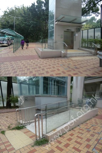 位置 : 位於地面層,1號無障礙升降機的側邊,斜道的兩邊。