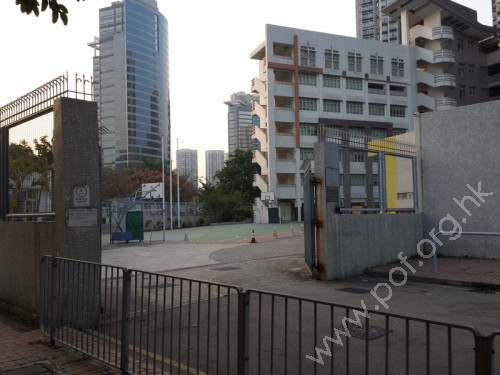 連接天柏路,通道非常寬闊,設有金屬對開閘門,是車閘,單邊門的淨空間闊1.3米,外塗灰色油漆。無觸覺警告帶,無觸覺引路帶。