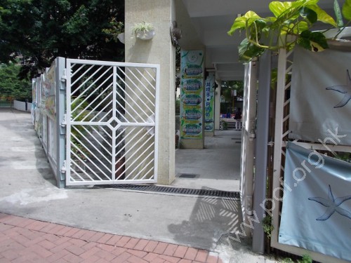 連接行車路,至頂部前往學校的車輛出入口;通道是非常寬闊的簡易斜道,斜度適中,入口設有對開的金屬閘門,外塗白色油漆,單邊門的淨空間闊度大於0.8米,無觸覺引路設施。