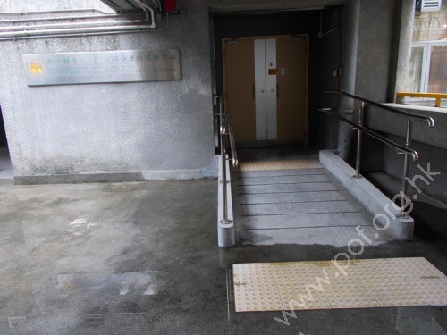 斜道闊1.5米,斜度1:12,是中心後門的入口,兩旁設有雙層扶手,設有黃色觸覺告帶及防滑帶,沿途沒有障礙物,頂底兩端有足夠的平面。