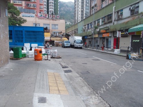 連接汽車路與行人路,通道是寬闊的露天停車場汽車出入口,兩旁有下斜路緣連接汽車路,無觸覺引路帶。