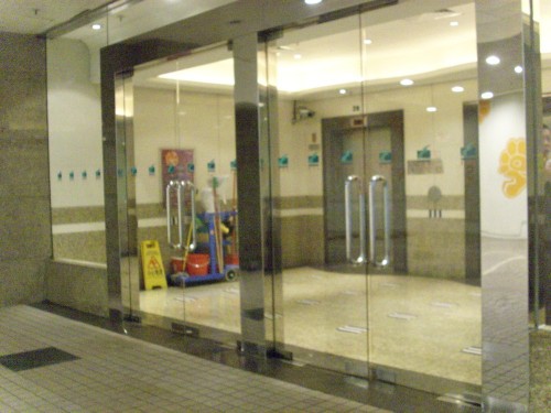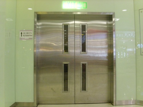 可從此通道乘搭升降機直往住宅平台,通道寬闊平坦無障礙,設有兩扇手推的鋼門,沒有觸覺引路帶.