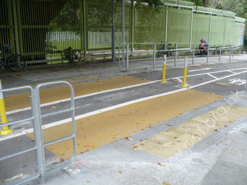 連接行人路與單車徑,位於行人隧道出入口前行人過路處兩邊各有一個,是橫過單車徑的行人過路設施;面積寬闊,斜度低矮;兩邊斜面均設有黃色觸覺警告帶;頂端連接行人路,有行人路保留空間;路緣石壆低及單車徑;視野開揚。