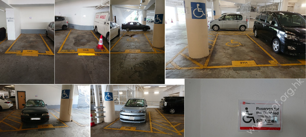 數目比例:停車場有50個停車位時須有1個障殘人士停車位,之後每100個停車位增加1個障殘人士停車位,至450個以上時應有6個障殘人士停車位。