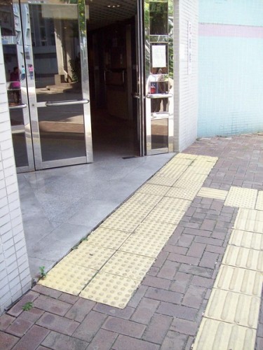 管狀不銹鋼做成的扶手,幾乎無處不在,非常方便老人行走及活動.外型隨所處位置而不同.無觸覺點字.