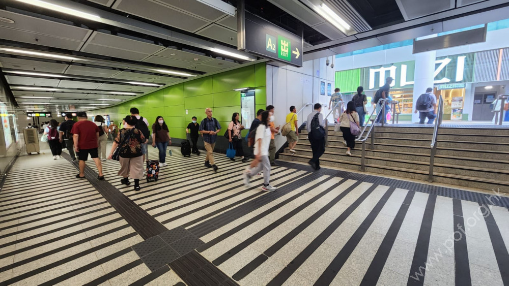 分開兩個入口,荷里活廣場對面入口由3段梯級、一段斜道及一組自動電梯(一上一落)組成,附有輪椅升降台;大磡道及龍蟠街交界是前往無障礙升降機的入口,設有標誌及方向指示牌,由一段斜道及梯級組成,升降機只由G樓地面層前往行人隧道;黃色觸覺引路帶沿著龍蟠苑旁伸延至A1出口的兩個入口前,於站內無障礙升降機入口有一小段觸覺引路帶由斜道和梯級頂伸延至升降機按鈕前。