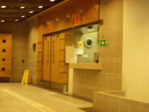 鋪有與地面同色的觸覺警告帶,位置磚及引路徑,導引至大門口,升降機及詢問處等.