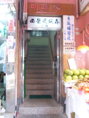 通道入口有一級台階,設有向內推的鋼門,然後連接12級的梯級,兩旁設有扶手,無觸覺警告帶.