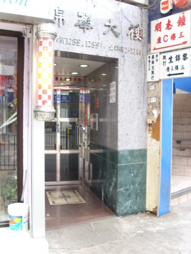 通道寬闊微斜無障礙,兩旁沒有扶手,設有向外拉的玻璃門,無觸覺警告帶.
