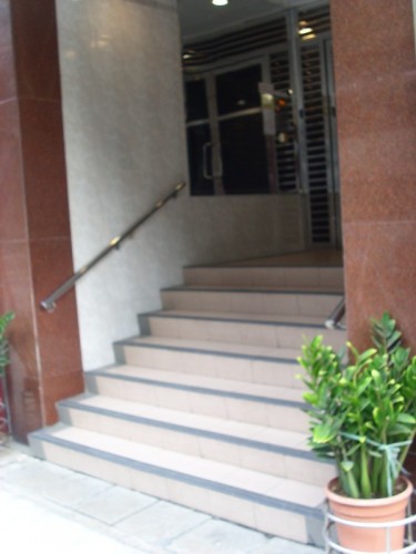 通道寬闊,是7級梯級,兩邊有扶手,底頂兩端無觸覺警告帶.也觸覺引路帶.