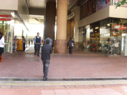 黑色觸覺引路帶和警告帶,由商場防煙門延伸至升降機入口.