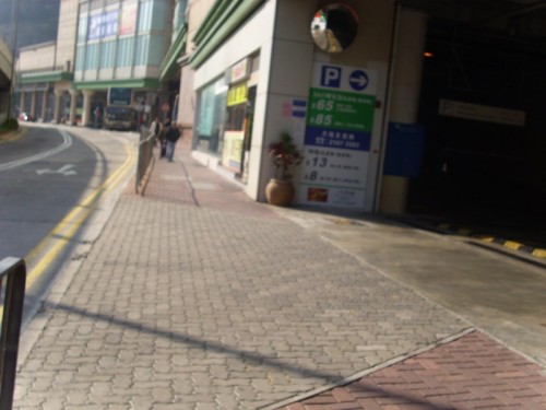 入口是一塊下斜路邊石,無觸覺警告帶.該停車場無障殘人士專用停車位.