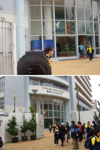 位置 : 學校門外對出,通往蒲崗邨道,行人天橋旁。