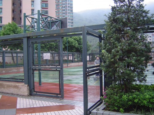 連接住宅出入口閘門,通道是一條寬闊無障礙的露天斜道通道,無觸覺引路徑,斜道末端是進出住宅豪園的綠色金屬框鐵網對開大閘門.