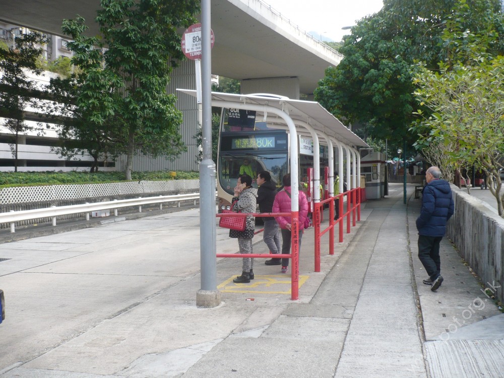 連接汽車路旁行人路,通道是寬闊平坦的巴士候車處,前端設有暢通易達候車位;無觸覺引路帶。