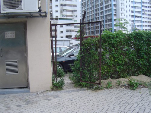 連接汽車路旁寬闊行人路,通道只有一扇門闊道,比較狹窄,進入後是碎石泥地,無觸覺引路徑,閘門是單邊棕色金屬框鐵網推閘門.