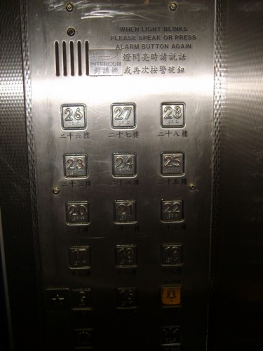 吊廂內有廣東話、英文及普通話廣播通知乘客將在那一層停下。