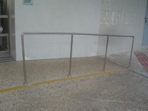 斜道是低矮斜道設計,無觸覺警告帶,單邊設有扶手,另一邊是牆壁,牆壁無凸出物.