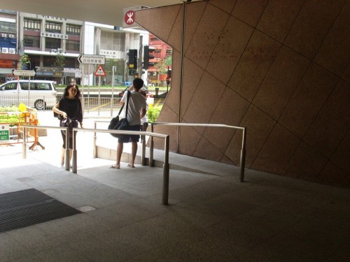斜道闊過1.05米,角度不大,兩邊有欄杆式扶手,底頂有平面無觸覺警告帶.