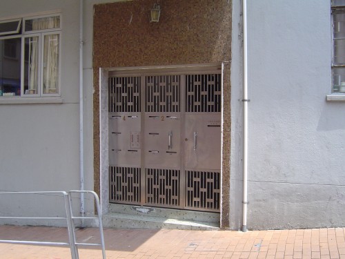 連接汽車路旁行人斜路,通道是寬闊的正門閘門,前臨兩級梯級障礙,無斜道輔助,無觸覺引路徑,閘門是不綉鋼面對開閘門.