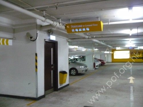 位置 : 商場往來1樓花園平台與地庫停車場的梯級通道底端,地庫停車場的出入口。