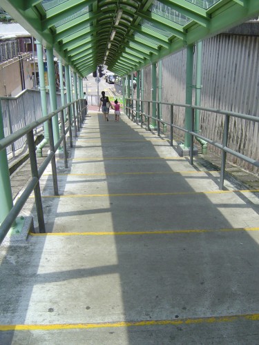 連接兩端汽車路旁行人路及聖十字架堂的出入口閘門,通道是寬闊平坦無障礙的露天行人路,位於屋苑與聖十字架堂之間,往來耀興路行人路是一條多段梯級,連接大石街行人路是一段梯級連一段踏板寬闊的長梯級,兩端均無斜道輔助,無觸覺引路徑.