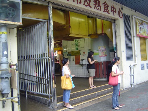 連接汽車路旁行人路,旁毗連汽車出入口,通道是寬闊平坦無障礙的行人出入口,前臨汽車出入口前的下斜路緣,兩旁行人路無觸覺引路徑,出入口進入後一邊是貨車停泊位,旁是往來街市出入口的斜道.