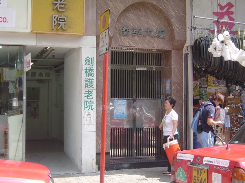 連接汽車路旁行人路,通道是寬闊的正門閘門,閘門只有一扇門闊度,前臨一級台階障礙,無斜道輔助,無觸覺引路徑,閘門是不綉鋼框面單邊閘門.