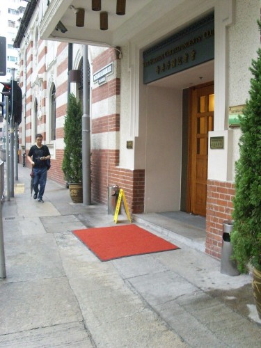 通道寬闊,有一級梯級,大廈入口是兩扇對開的木門.無觸覺引路設施.