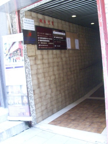 通道寬過1.05米,入口有一小級梯級障礙,輪椅或可勉強通過.入口內的通道是斜道,兩邊有扶手,底頂無觸覺警告帶.走廊的一端有梯級障礙.