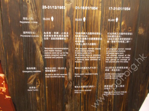 大火災後政府統計的受災人數,及向災民派發白米與救濟金的數字。