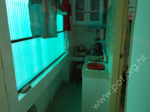 徙置單位內無廚房,居民會在通道長廊放置爐頭與煮食用具,並在開放的長廊就地煮食。
