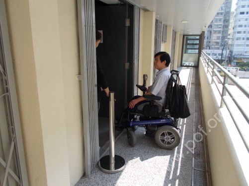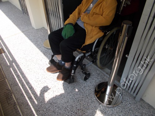 電動輪椅太重難於協助,巡查當日由本會無障礙大使曾先生實地測試無法進入,即場向當值主任反映問題。