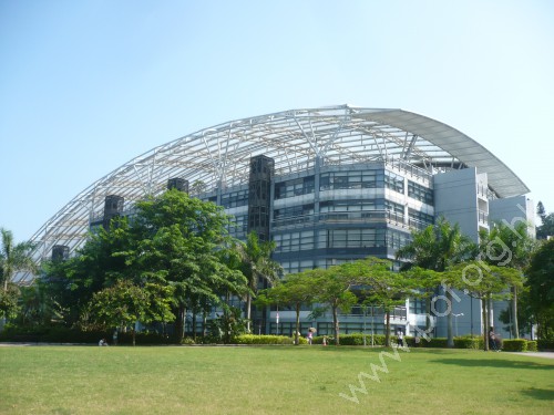 愉景灣的社區設施齊全,區內有多間學校,好像這間國際學校。 | 這座宏偉的建築,風格有點科幻,原來是位於中央公園的學校。 |