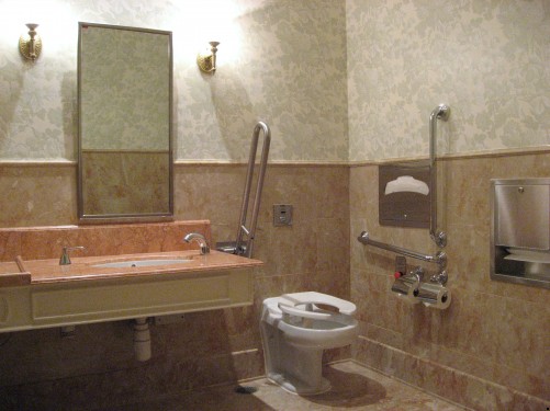 泳池特設有泳椅輔助車設備借用 | 公園設有凸字顯示地圖 | 餐廳外的洗手間 |