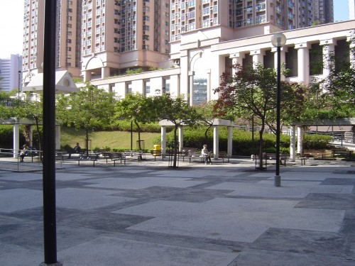 鞍誠街花園,環境清靜優雅,閙市中的綠洲。 | 花園設有行人天橋連接新港城中心與第三期商場,往來很方便。 |