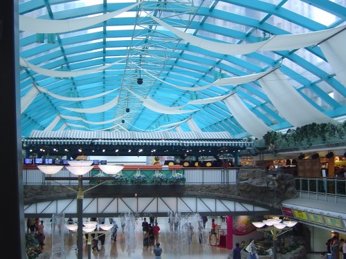 新港城中心除了有大型購物及娛樂設施外,商場的裝修華麗不凡。商場以純白為主調,配以水池、假石、植物,美觀之餘富有生氣,商場中央採用玻璃天幕設計,華麗之餘,採光充足,具環保概念。