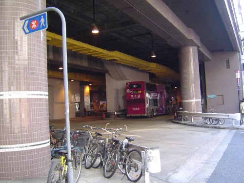 商場地面層是馬鞍山市中心巴士總站,旁是西沙路,設有巴士站及小巴站。 | 巴士總站內的候車島,寬闊易行,旁是計程車站。 |