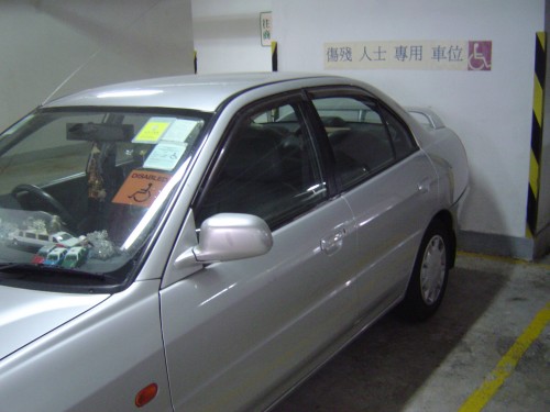 海濤居停車場,汽車入口連接鞍駿街行人路。 | 供障殘人士專用的停車位,剛好有一名障殘人士使用。 |