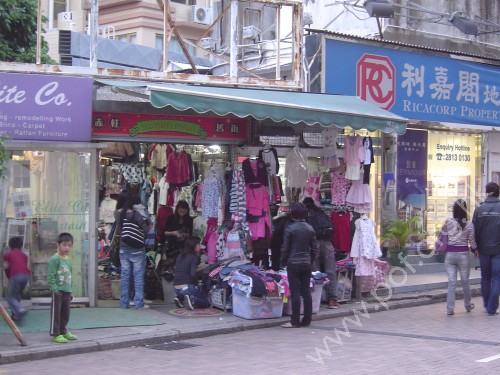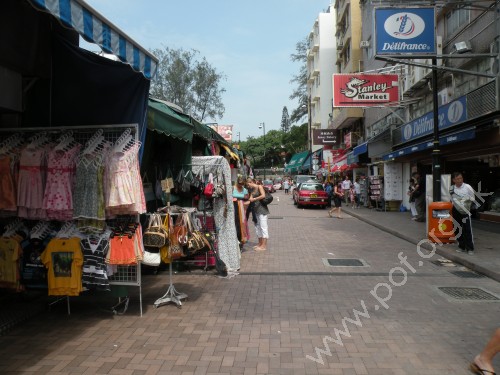 赤柱市集及大街的街道,兩旁商舖林立,擺滿貨物,使原本狹窄的通道更窄。 | 赤柱舊街的內街,一端設有斜板連接台階。 |