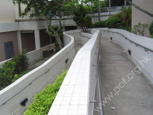 往來美利樓的行人通道平坦,地面層設有斜道連接走廊。 | 赤柱卜公碼頭連接的通道,與碼頭內都是無障礙。 |