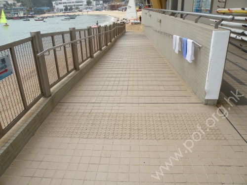 赤柱正灘設有斜道連接行人路,此外往來泳灘也設有斜道。 | 赤柱正灘旁停車場設有障殘人士專用的泊車位。 |