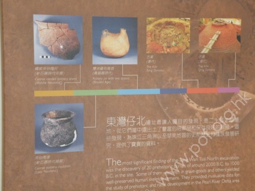 馬灣東灣仔北考古遺址及發掘情況,遺址最少有四千年歷史。 | 東灣仔北考古遺址藏有豐富的文物,其中最曯目的是二十個史前墓穴。 |