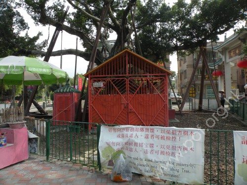 再看位於天后廟旁的小榕樹許願樹,長得綠油油的,相信可幸免於難。 | 小榕樹前亦設有許願架,架上的寶牒不多,也許求姻緣及求子者不多。 |