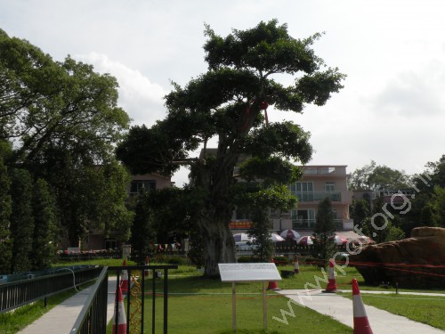 從增城引入的新許願樹,是一棵細葉榕,樹冠為了好意頭而剪出的奇特外形。 | 新許願樹所在位置修建出許願廣場,設有許願石許願燈等,給善信多個選擇。 |