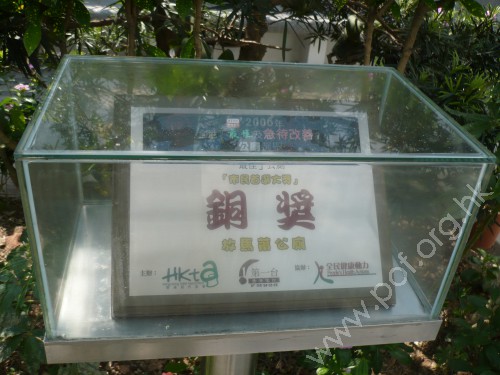 公廁所獲的「最佳公廁」銅獎,事實這種選舉應該年年舉行才是。 | 公廁內的蘭花盆栽,標明是真的不是塑膠貨,切記眼看手勿動。 |