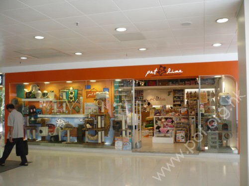 商場設有的一站式寵物用品連鎖店,供應多種寵物用品及食品,比人用的還豐富。 | 商場沒多少食肆,有一間麵包西餅店與這間供應速食品店,算是商場的美食天地。 |
