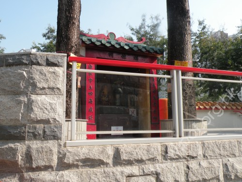 蓬瀛仙館正式名稱是「蓬瀛僊館」,「僊」是古字,不過僊與仙相通。 | 正門後的一座「福德祠」,供奉土地公,廟雖細但打理得乾淨企理。 |