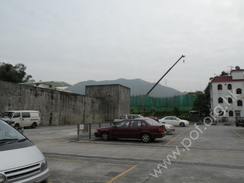老圍圍門設計窄小,圍門上設有更樓守望,是防禦性能甚高的設計。 | 北面圍牆原築有供守望的高台,現圍牆依舊,只餘小狗在守望。 |