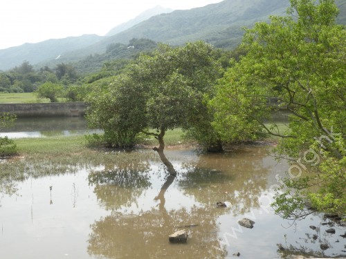 沙壩後的潟湖是一片淡水濕地,濕地最後變成陸地,尤如滄海桑田。 | 貝澳的潟湖至今仍是生態茂盛的濕地,有多種可供觀賞的紅樹。 |